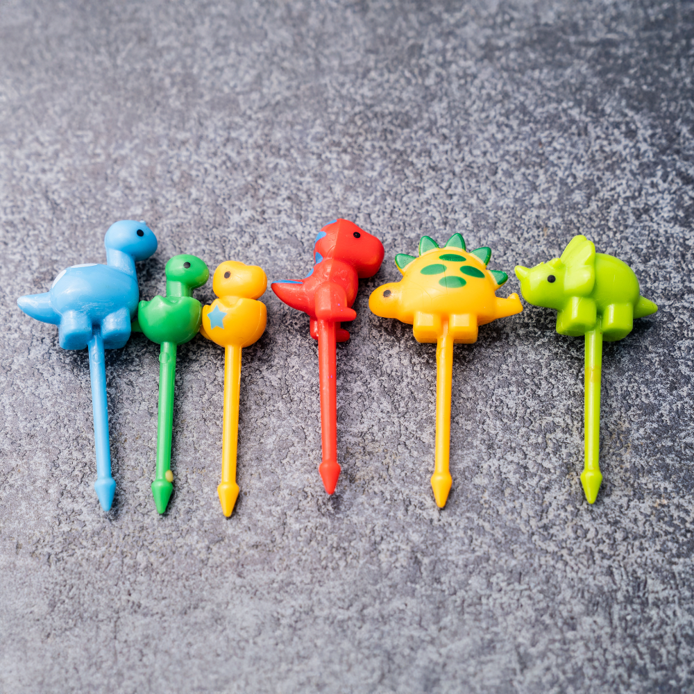 Das Dino 6er Spieße Set aus Kunststoff ist ein echtes Highlight für alle kleinen Dino-Fans und macht jede Brotzeit zum Abenteuer – ideal für Schule, Kindergarten oder Ausflüge. Die farbenfrohen Dino-Spieße bringen Spaß und Kreativität in die MumpfUP-Box und machen gesunde Snacks wie Obst, Gemüse oder Käse zum echten Erlebnis. Perfekt zum Verzieren und Gestalten liebevoller Kinder-Brotzeiten. Kein Spielzeug - für Kinder unter 3 Jahren nicht geeignet!