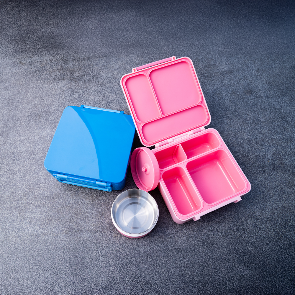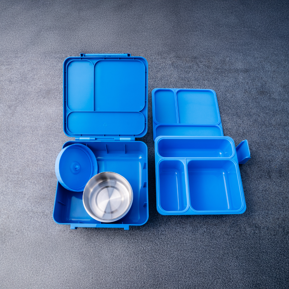 Unsere stylische Brotbox mit glänzender Oberfläche ist der perfekte Begleiter für den Schul- und Arbeitsalltag – leicht, extrem robust und mit praktischem Henkel auch ohne Rucksack einfach zu tragen. Auch sehr gut für Studenten geeignet, die von Daheim ihr Essen mitnehmen wollen. Das Highlight ist der integrierte Thermobehälter mit Edelstahlinnenleben – ideal für warme Suppen oder einen kalten Joghurt für unterwegs. Die durchdachte Innenaufteilung mit einem variabel einstellbaren Fach und einem geteilten Bereich bietet maximale Flexibilität. Eine flächige, herausnehmbare Dichtung sorgt für perfekte Auslaufsicherheit, die komplette Box ist spülmaschinenfest und BPA-frei.