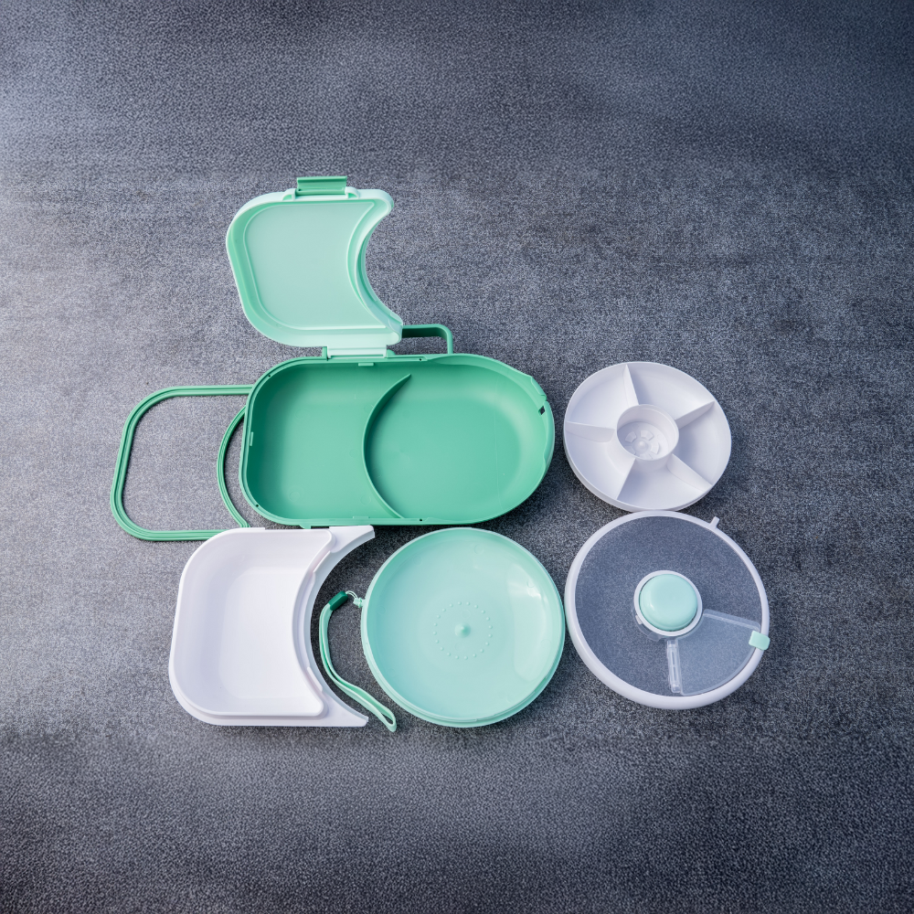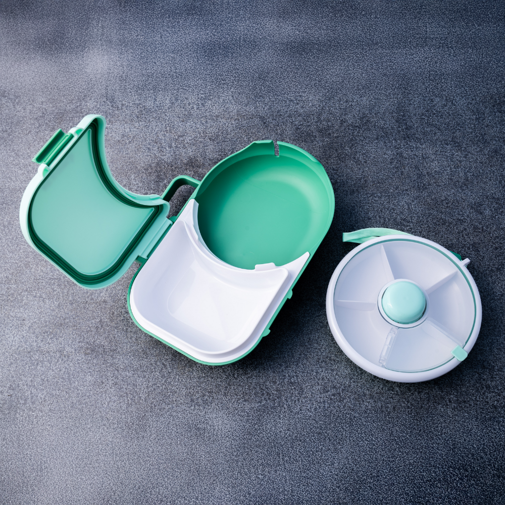 Die stylische Kinderbrotbox mit innovativem Spinner ist perfekt für den Schulalltag und auch für ältere Kita-Kinder ein echtes Highlight. Mit einem Knopfdruck in der Mitte lassen sich die fünf Fächer ganz einfach rotieren – ideal zum Snacken, Entdecken und Genießen. Der drehbare Einsatz ist vollständig zerlegbar und durch die herausnehmbare Dichtung beim großen Fach absolut hygienisch und auslaufsicher. Dank des cleveren Designs mit leicht zu öffnender Klappe ist der Inhalt stets gut erreichbar – perfekt auch für unterwegs, Ausflüge oder zuhause.